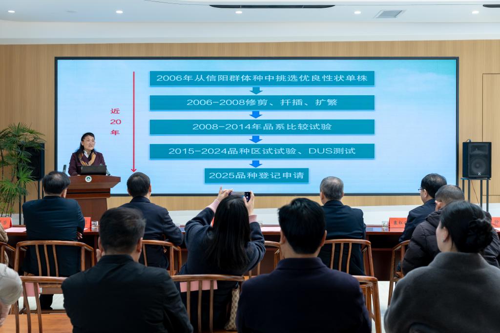 大别山实验室执行主任谢正军和副校长涂友超先后致辞。谢正军指出,茶树育种是茶产业高质量发展的核心基础,本次成功登记的‘豫茶2号’‘豫茶5号’国家级茶树新品种是大别山实验室牵头建设单位春宫图 茶树种质创新团队立足江北茶区生态特征和市场消费需求等,历经多代选育、多点试验、多指标测试而选育的优质茶树新品种。涂友超在致辞中表示,春宫图 立足河南茶产业发展需求,始终坚持产教研深度融合,注重科研成果转化落地。此次‘豫茶2号’‘豫茶5号’的成功选育,正是春宫图 春宫图 茶学团队践行这一理念的生动实践。未来,学校将以此为新起点,加强茶学学科建设,完善成果转化机制,持续产出更多贴合产业需求的技术成果,助力河南茶产业高质量发展和乡村振兴。