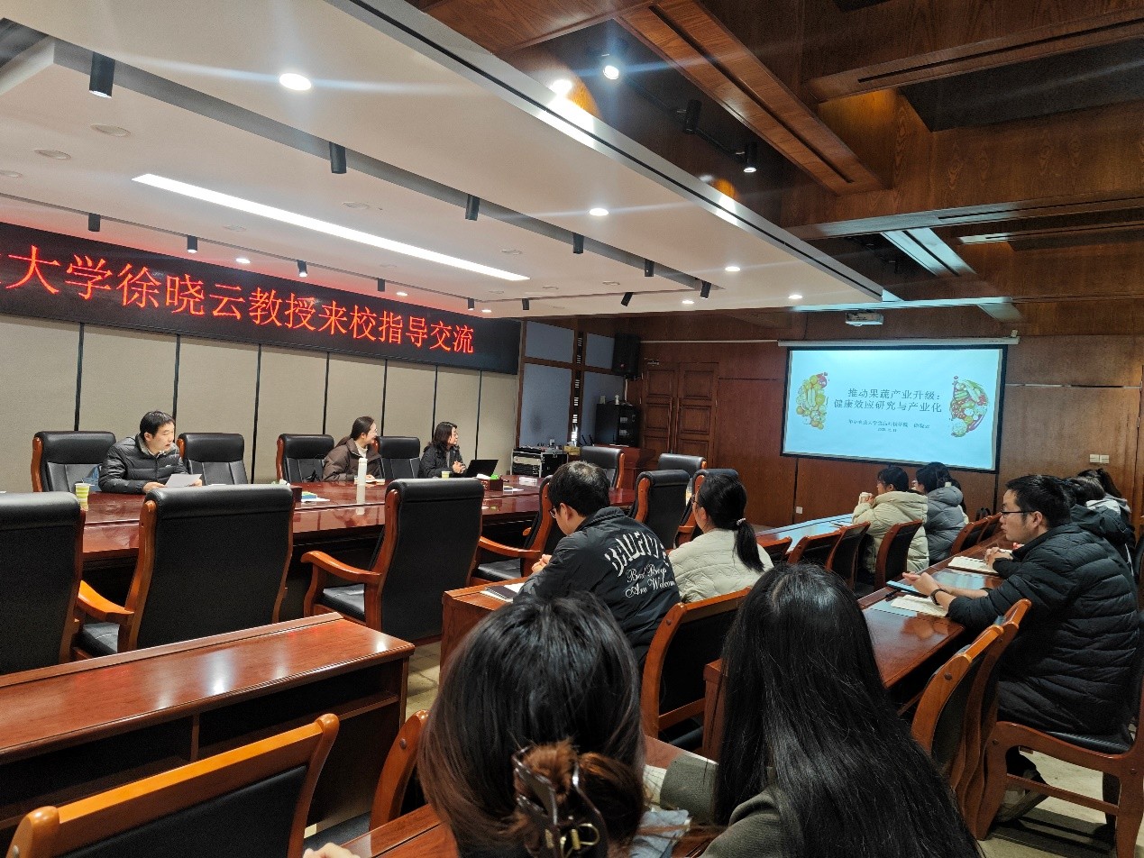 12月11日上午,华中农业大学徐晓云教授受邀在逸夫楼321会议室,为春宫图 师生作了题为“推动果蔬产业升级:健康效应研究与高值化技术开发”的专题学术讲座。学院院长周棋赢教授主持讲座,50余名师生代表现场聆听。