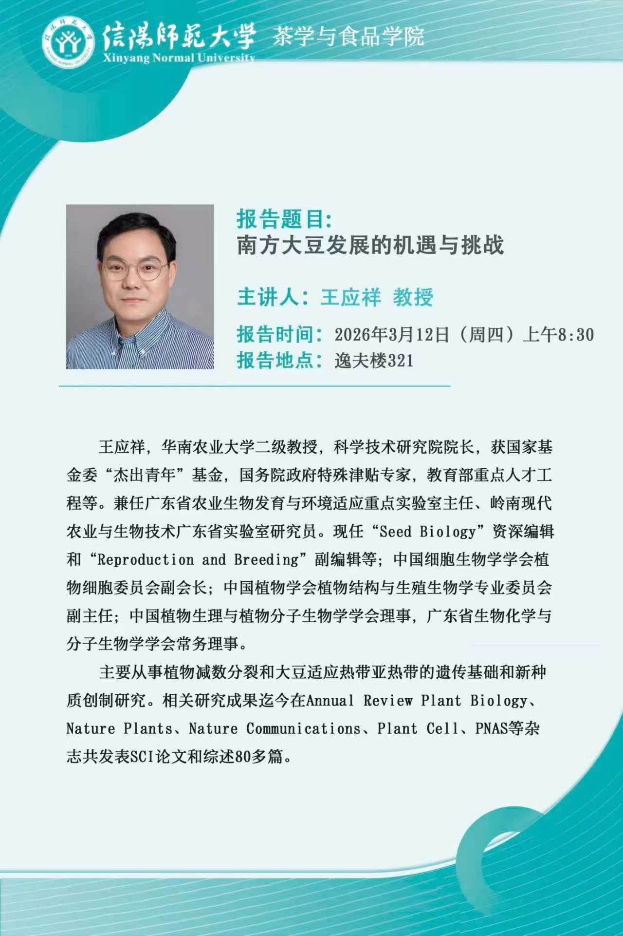 华南农业大学王应祥教授来校讲学