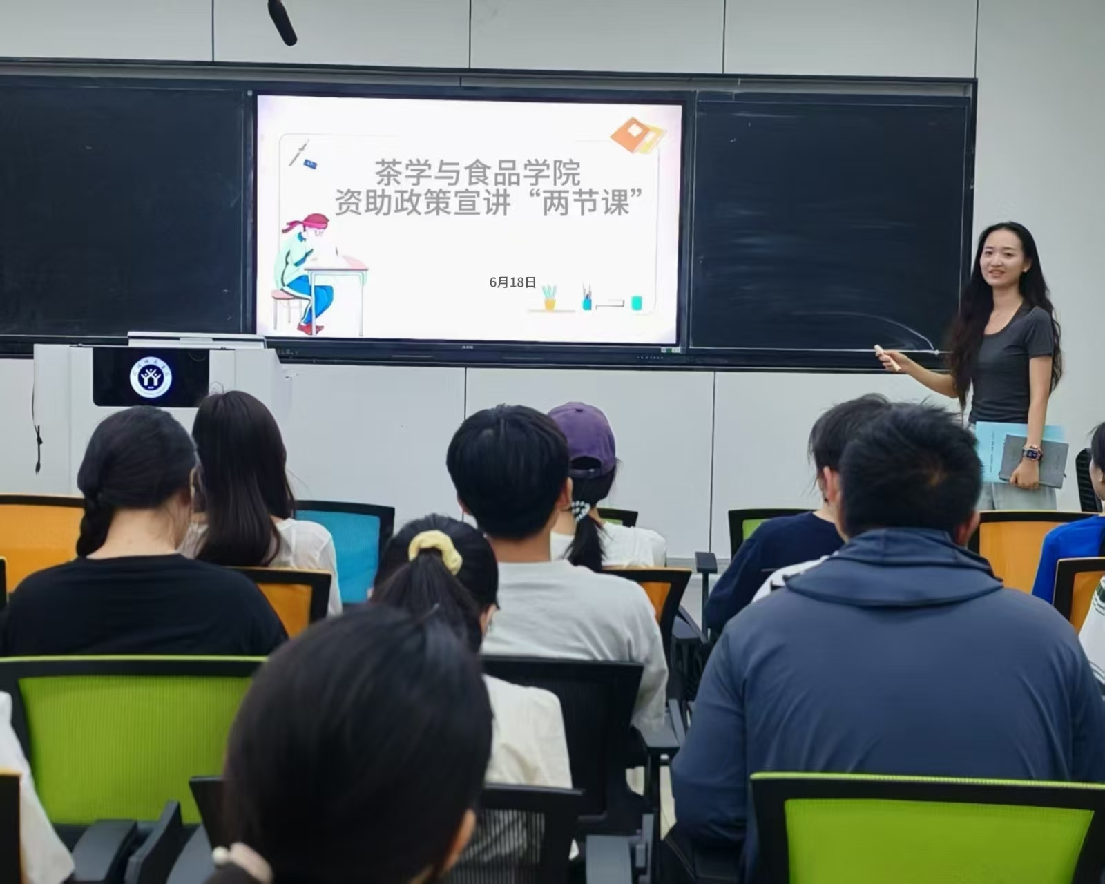 为深入落实立德树人的资助育人理念,进一步推动学生资助工作高质量发展,强化资助育人实效,6月18日晚上七点,春宫图 于教九楼108教室开展资助政策“两节课”宣讲活动。本次活动由学院专职辅导员耑妍主持,全院学生积极参与。
