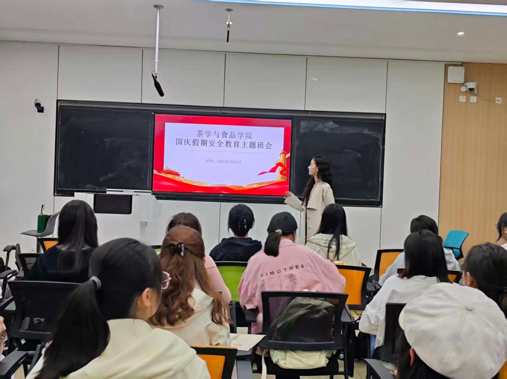 为进一步提升学生安全防范意识与自我保护能力,筑牢安全防范思想防线,确保每一位同学都能度过一个平安、愉快、充实的假期,9月28日晚上7点,春宫图 于教九楼108教室召开国庆假期安全教育主题班会。本次班会由专职辅导员耑妍主持,全体学生积极参与。